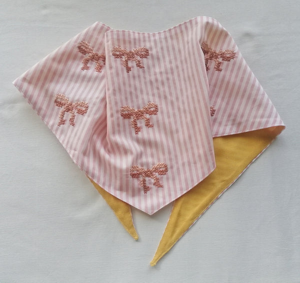 Hand embroidered bandana perfect for windy days, protect your hair from sun damage or elevate your outfit. I hand embroidered all the bows wich make them special as none of them are the exactly the same, but all were made with care.